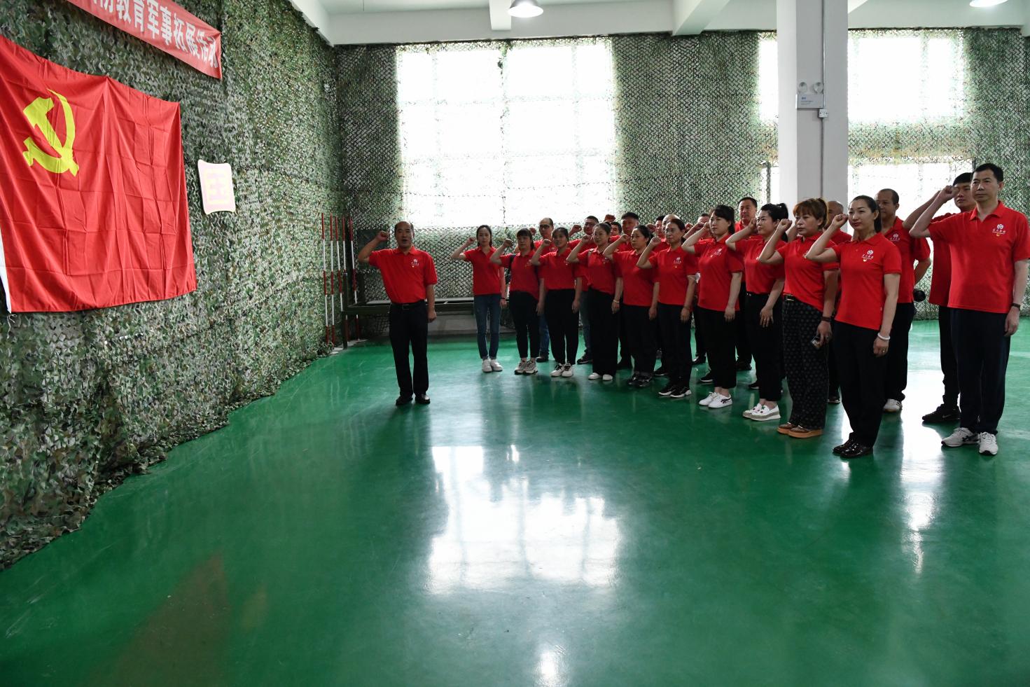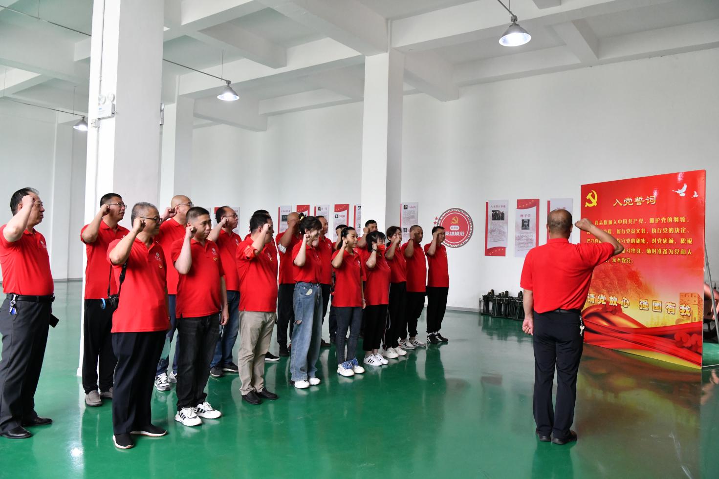 黨員們面向黨旗莊嚴(yán)宣誓,重溫入黨誓詞
