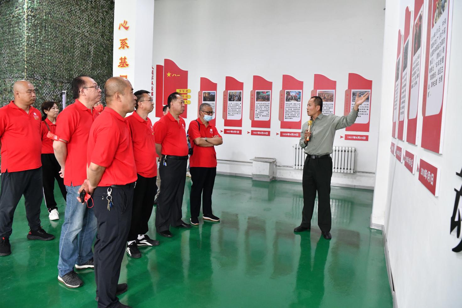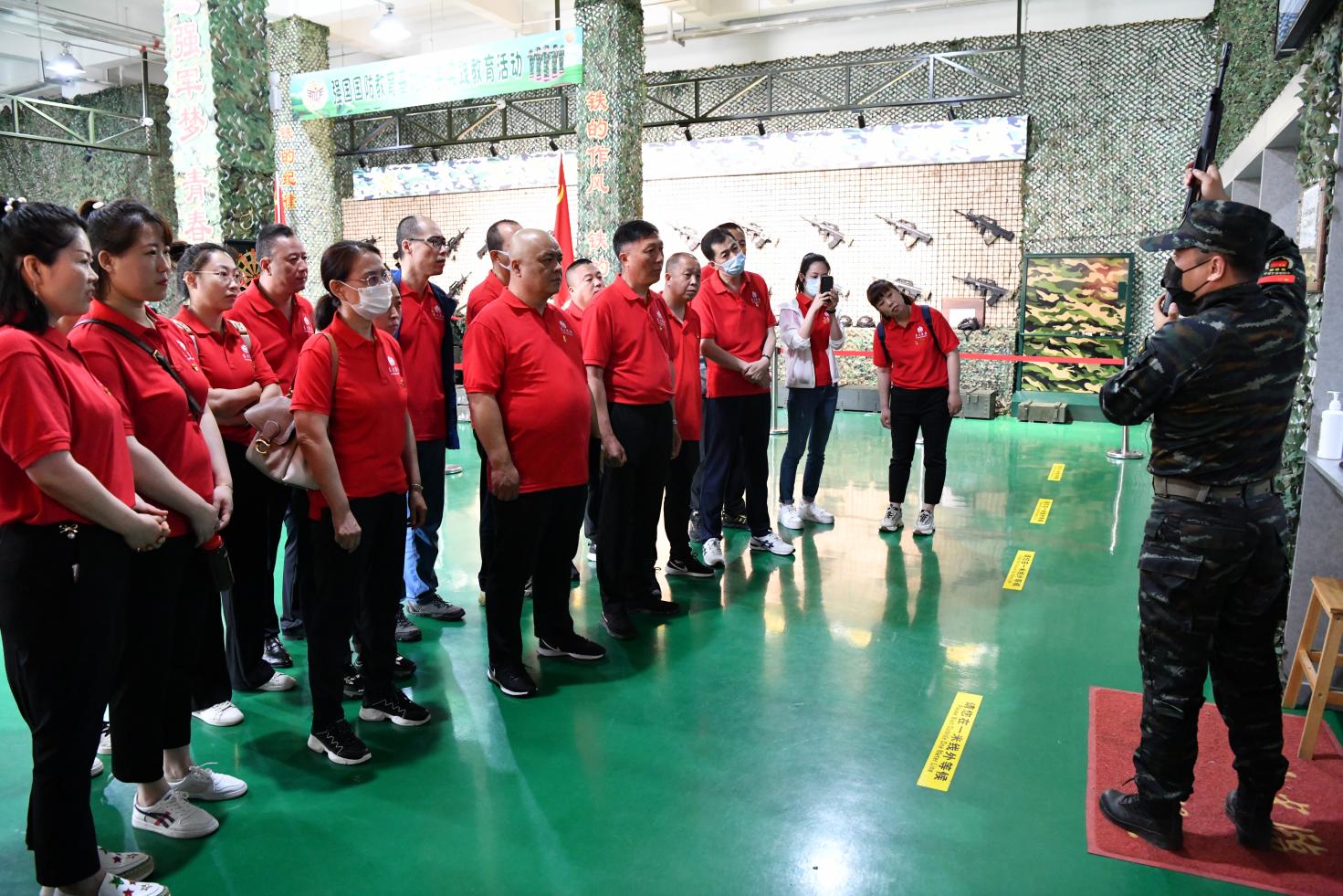 在國防教育基地內(nèi)學(xué)習(xí)黨史軍史知識(shí)
